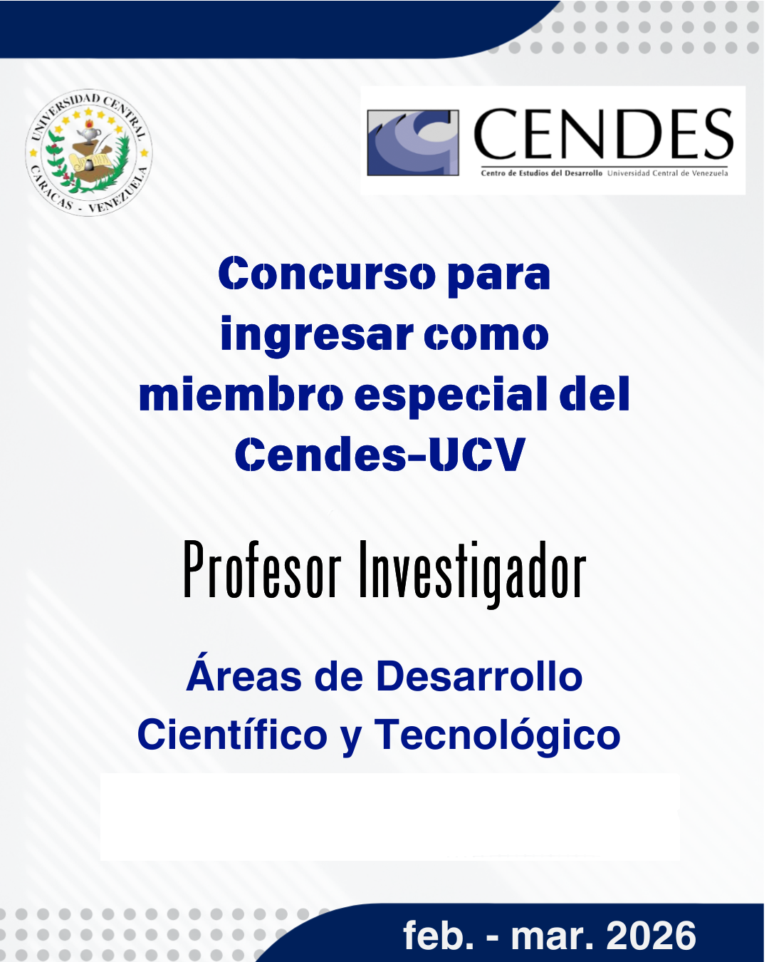 Concurso miembros especial del Personal Docente y de InvestigaciónFebruary 23 - March 09