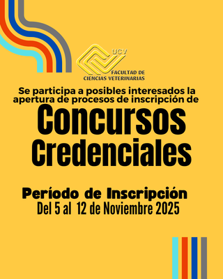 La Facultad de Ciencias Veterinarias de la Universidad Central de Venezuela participa a posibles interesados, la apertura de los procesos de inscripción de Concursos Docentes por Credenciales. Los requisitos exigidos se encuentran en cada post de esta publicación según área de concurso. El Proceso de inscripción se llevará a cabo desde el 5 al 12 de Noviembre de 2025.