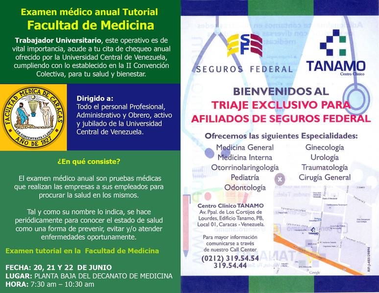 Carlos Rodríguez, Jefe de la División de Servicios de Salud de la Universidad Central de Venezuela, también aprovecho la oportunidad para hacer un llamado a todos los trabajadores activos y jubilados: “Agradecemos a todos la mayor difusión, la mayor asistencia a este tipo de eventos, dirigido a personal administrativo, obrero y profesional y dirigido a todas las Facultades y Dependencia, iniciamos en la Facultad de Medicina por ser una de las tiene un número mayor de trabajadores. Posteriormente seguiremos con la Oficina de Bienestar Estudiantil (OBE), Facultad de Ciencias y Farmacia. Paralelo a ello estamos haciendo los tramites o las gestiones en la ciudad de Maracay y Barquisimeto, para abarcar a todos los trabajadores universitarios”.