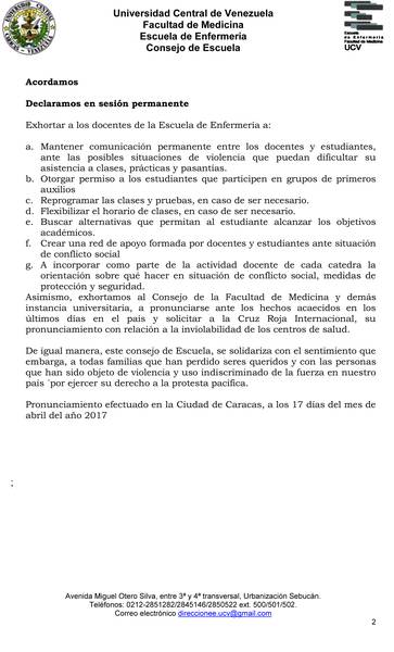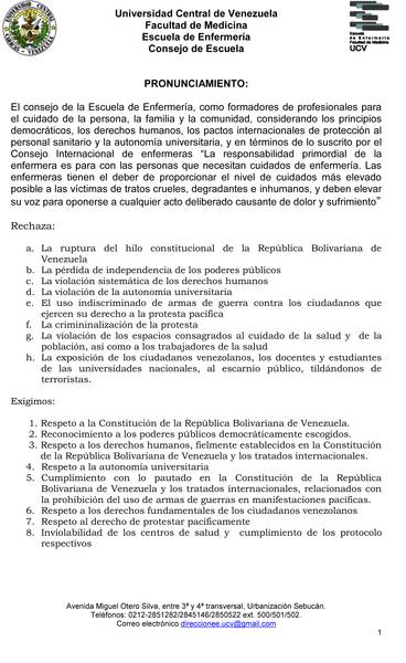 Pronunciamiento del Consejo de la Escuela de Enfermería