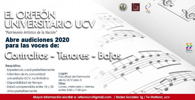Orfeón Universitario UCV, audiciones 2020 para contraltos, tenores y bajos