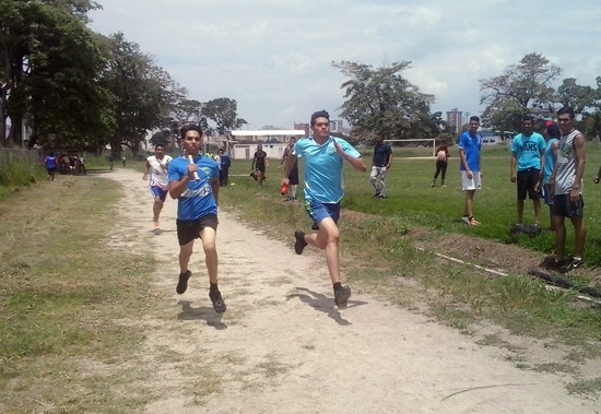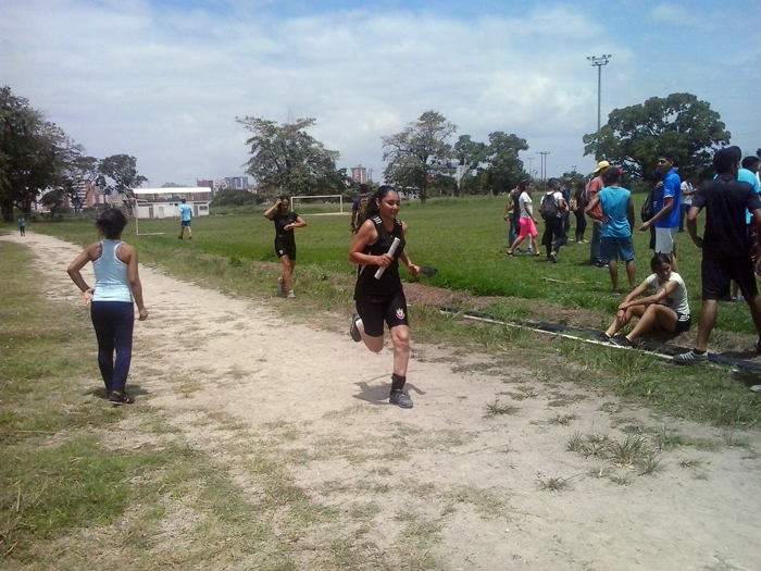 El atletismo fue por todas este lunes 9 de julio en el campo de futbol, efectuándose la carrera de velocidad 6x400 metros planos, que completan los 2400 metros en la pista donde se integraron los equipos. Estuvo coordinado por los profesores (as) del Dpto. de Deportes UCV-Maracay Ruth Veloz y Jesús Mayo.