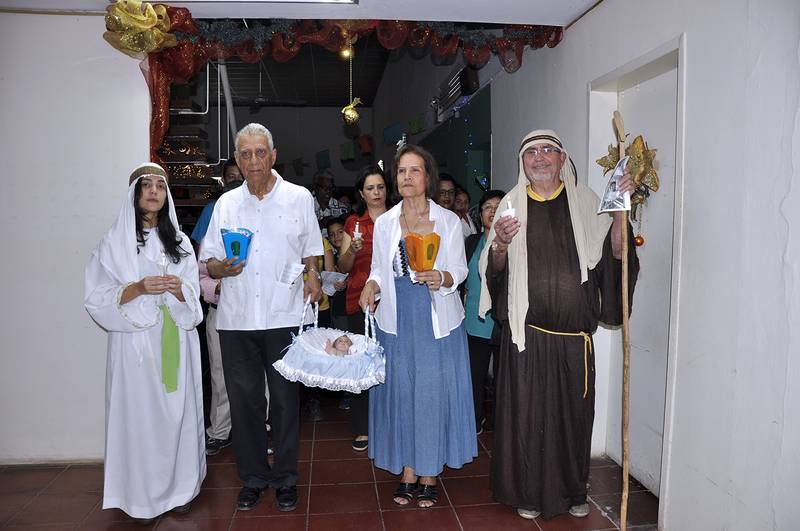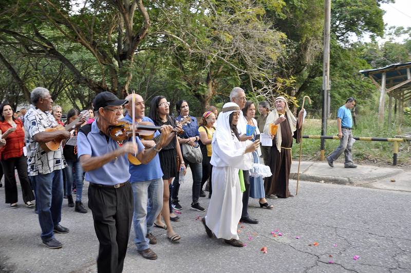 Los padrinos, San José, la Virgen María, músicos y público presente se reunieron en una gran fiesta para la búsqueda, paseo y celebración de los primeros pasos del Niño Dios. Los padrinos para esta ocasión fueron los compañeros jubilados de la Facultad de Agronomía de la UCV Maracay, Prof. Rafael Dávila y su esposa Amelia Montesinos. Por la Virgen María, estuvo la joven integrante del Coro de Voces Claras de la UCV Maracay, María Fernanda Gorrín; y San José lo representó el Sr. Gino Petrizzelli, del Coro Universitario de la UCV Maracay.