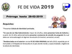 A partir del Lunes 7 de Enero 2019 y hasta el 28 de Febrero de 2019, se realizará el proceso censal FE DE VIDA.