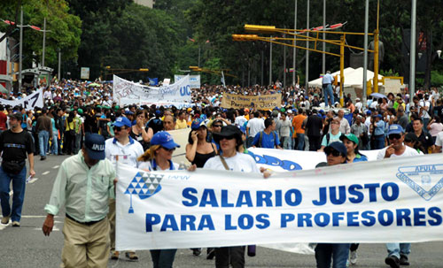 FAPUV quiere destacar ante la opinión pública del país las razones del conflicto universitario. Al respecto, explica que “desde el año 2004, violando los derechos a la libertad sindical y a la negociación colectiva, así como los Convenios 87, 98 y 117 de la OIT, ratificados por Venezuela, sobre el trabajo decente, la libertad sindical y la negociación colectiva, a los profesores universitarios se nos ha negado el derecho a suscribir una nueva contratación colectiva contenida en las Normas de Homologación”.