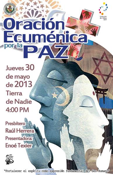 Con el objetivo de generar un clima de espiritualidad, convivencia y fortalecer la esperanza, el Centro para la Paz y los Derechos Humanos, la Parroquia Universitaria y la Dirección de Cultura de la UCV, convocan a toda la Comunidad Universitaria a participar en una “Oración Ecuménica por la Paz”, que se realizará el próximo jueves 30 de mayo, a partir de las 4:00 pm en la “Tierra de Nadie”.