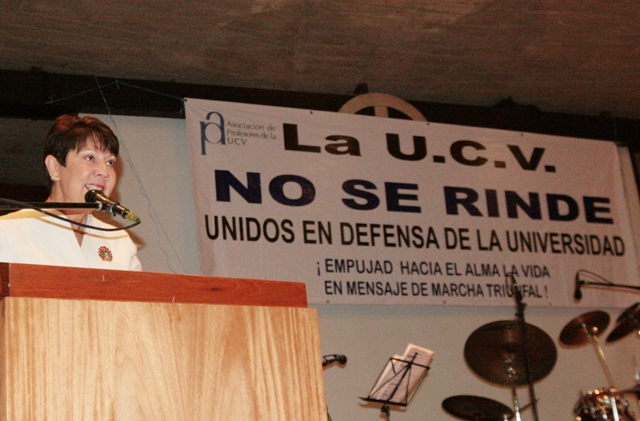 El Auditorio de la Facultad de Arquitectura de la UCV estaba repleto. Hoy, y desde el año 1958, se celebra el día del Profesor Universitario; no obstante, como lo dejó ver el Presidente de la Asociación de Profesores de la UCV, Víctor Márquez, el encuentro no estaba marcado por la tradicional festividad.