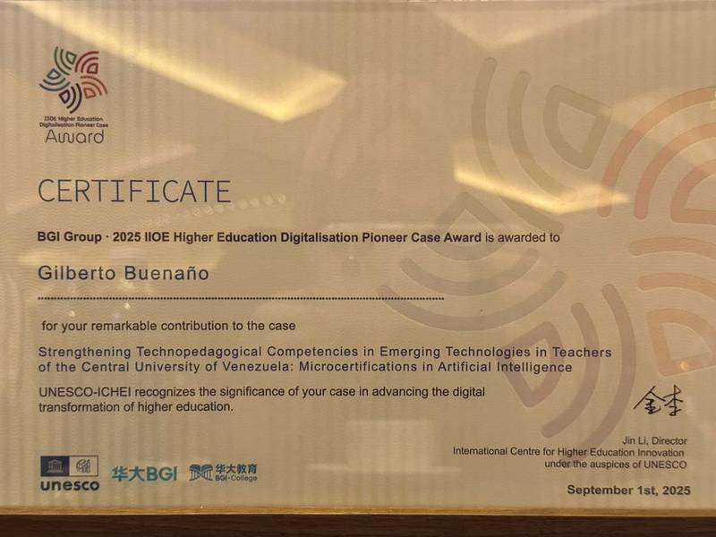 El día 1 de septiembre, se llevó a cabo en la ciudad de Singapur la ceremonia de entrega del premio "IIOE Higher Education Digitalisation Pioneer Case" a los proyectos institucionales galardonados, perteneciendo uno de ellos a la Universidad Central de Venezuela.